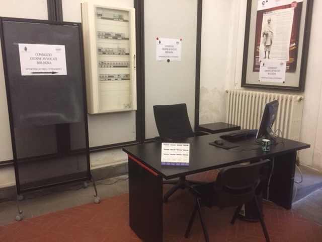 Servizio svolto presso l'U.R.P. del Comune in Piazza Maggiore 6 (Sportello generalista) il lunedì e il mercoledì, dalle ore 9 alle 12, e presso il Tribunale in Via Farini 1 (Sportello in materia di diritto di famiglia), all'ingresso, il martedì dalle ore 12 alle 13.
